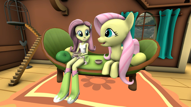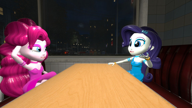 Very nice, it looks so warm and cosy. Pony Rarity's smile is just cute, and I like their shadows in the back.
