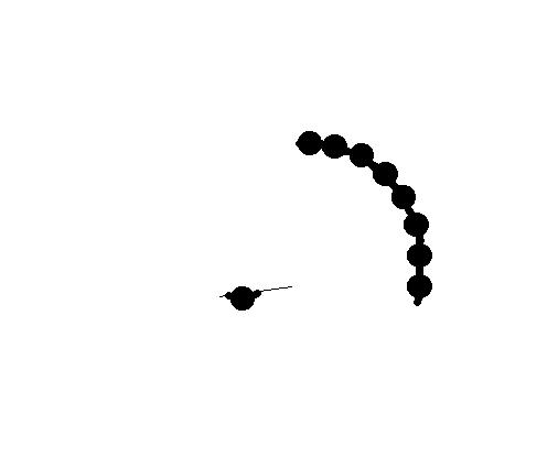 Seems like it only creates circles on mouse move, so it leaves gaps when you stop moving the mouse and the target is still moving.