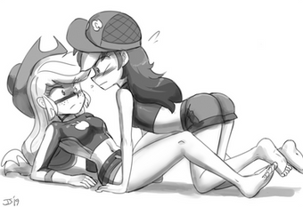 ~ Ah, I think a MLP Rarity and Applejack tickle fight would be cute"Cute indeed"