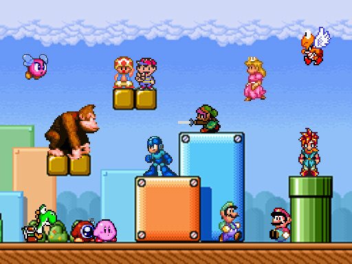 another homage to the game bullet bill 3, this time including (almost) all the characters. Unfortunately I couldn't include all the playable characters because I couldn't find their sprites, I hope you like them anywayCredits: TSR, mario universe, the shirt ninja, Yawackhary, Jermungandr, sprites INC, Nintendo, CAPCOM, Hal laboratory