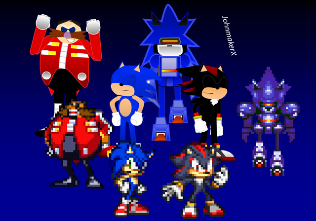 I thought it was a good thing to turn some sonic characters into robots Mecha Sonic style ,Β and for a long time I was intending to make an art about itMecha Sonic belong to SEGA