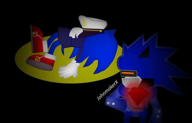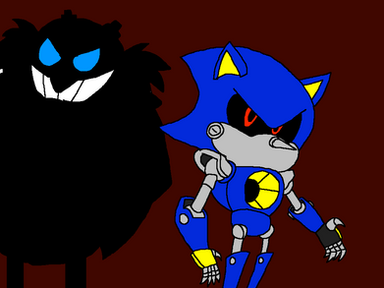 Metal Sonic with tail ???this art is a reference to "two/three Spiderman meme"