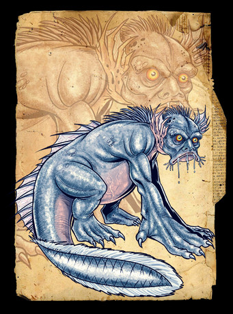 My version of the D&D monster known as the slaad from the toad-like race of chaotic outsiders called the slaadi. There is no "purple" slaad in the original D&D game but I thought there really should be. These creatures have a long, freezing tongue and enjoy changing the natural environment to suit their current mood.The slaadi are copyrighted by Wizards of the Coast and Dungeons and Dragons.