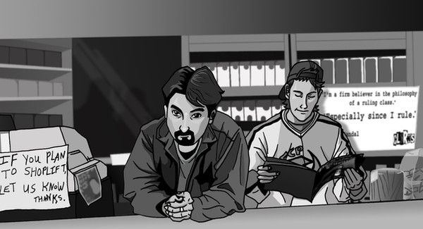 So awesome, really. It's got everything Clerks should have. It's B&W, Randal's looking at porn, and Dante is looking generally miserable.