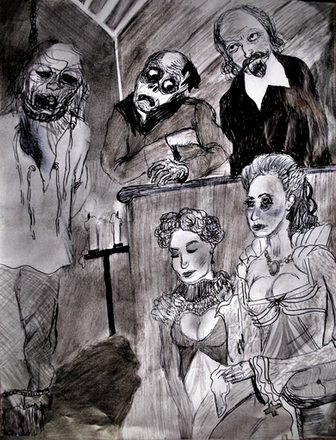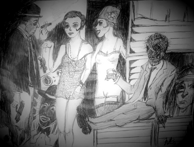 This particular drawing is meant to be Mafiaso...gangsters having a conversation about a dispute, which they call a "sitdown".. If you picked up that it's supposed to be from a bygone era, like the 60's or 70's, then GREAT, because I meant that.
