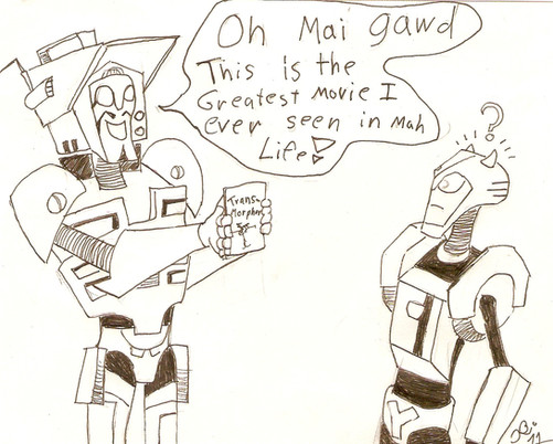 Having read the Best of Rarities TF collection, I had a good laugh at the B&W UK story Starting Over, a tale where Prowl and Wheeljack whine about the good ol' days while battling familiar foes. Here's Prowl's reaction to what would happen if the likes of Long Haul and Dead End joined Bumblebee and co in getting the latest TF gimmicks of late Generation 1...Related content