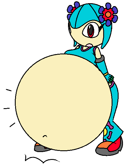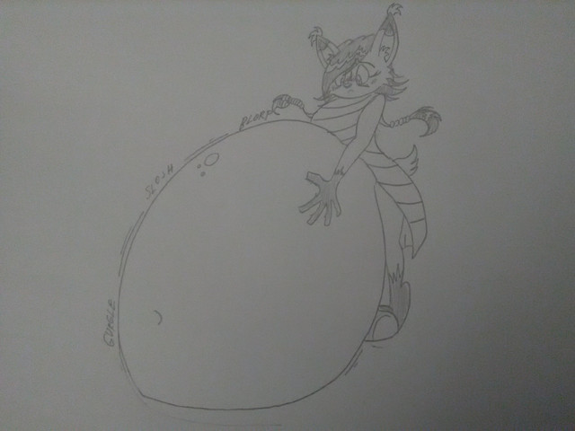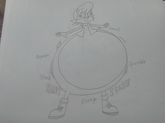 Warning, this picture contains a sequence about a disproportionatly growing belly. if you do not find this kind of thing plesent, then feel free to move on to something else.I drew out one of the characters in my reference sheet.
