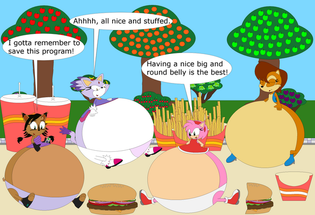 Warning, this picture contains two inflated girls. If you do not like this kind of thing, then press the back button, and go somewhere else.Vuma's testing out some chips Johnny made on some unsuspecting victims. poor them.