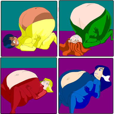 So anyways, the picture. Clover is inflating herself to enter a pregnancy contest (I have no idea what that would entail.) There's no text, because I'll let you guys fill in the blanks. Get creative. Use your imagination , but keep in mind their current expressions.