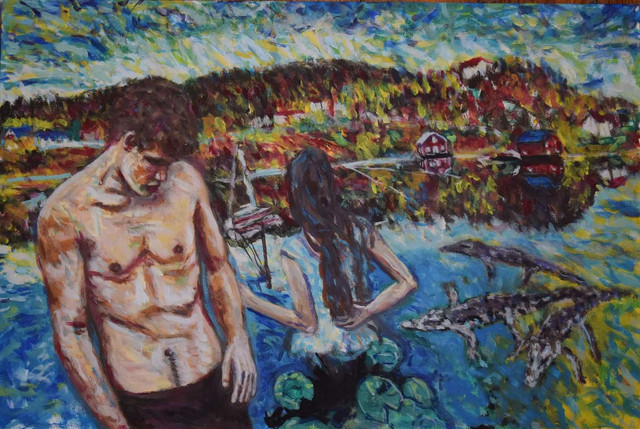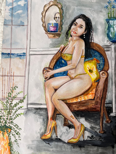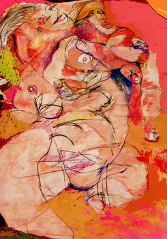This is a creation made in Adobe photoshop. I took a photograph of a sketch I have in my sketchbook and made a reverse copy of it right next to it. Then I edited the color as a whole.It seems very bodily to me as a lot of my work feels lately. I have an obsession with "opening my brain" which I feel this kind of looks like