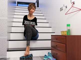 #3d #girl #poser #shorts #sneakers #stairs #steps #stripes #superfly #marvelousdesigner #outside