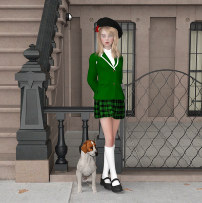 (Felicity Byron, without being accompanied by her puppy, will be starting at St Tibb's High School in Holly and Claire's class when the Long Weekend series reaches Monday morning. She isn't officially part of the Kate's Exciting Life canon quite yet so enjoy the colour until she does!