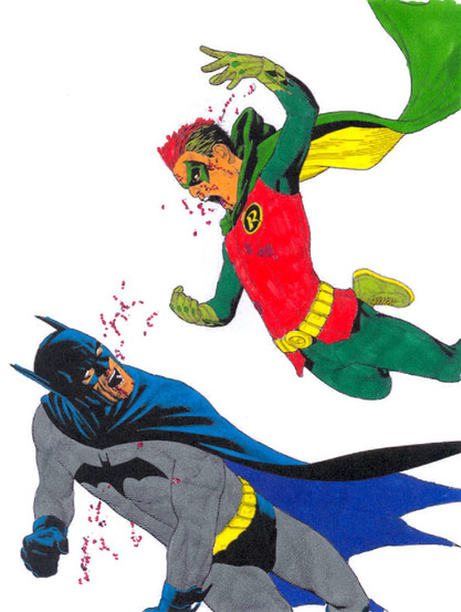 kind of a quick and silly illustration havent drawn batman since I was like 13. I went with the idea that if Robin were to team up with Batman he would most likely be destroyed.Related content