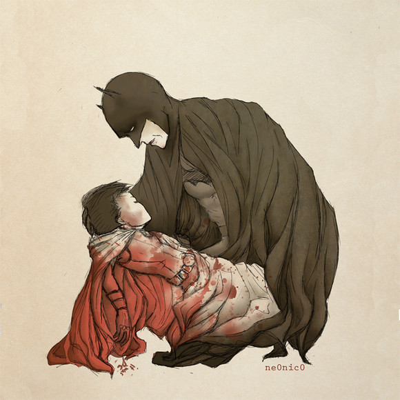 Great picture, very dark and emotive. The contrast between Batman and the frail body of Robin is really efficient