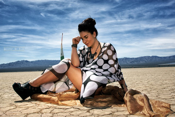 Arabellamoonxo posing in a dress at the Jean Dry Lake Bed