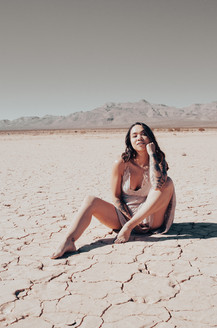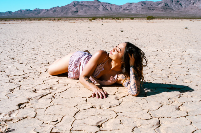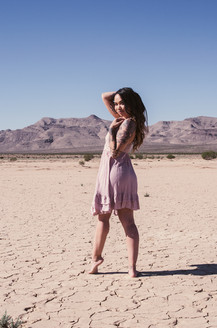 Arabellamoonxo posing in a dress at the Jean Dry Lake Bed