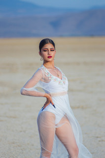 Arabellamoonxo posing in a dress at the Jean Dry Lake Bed