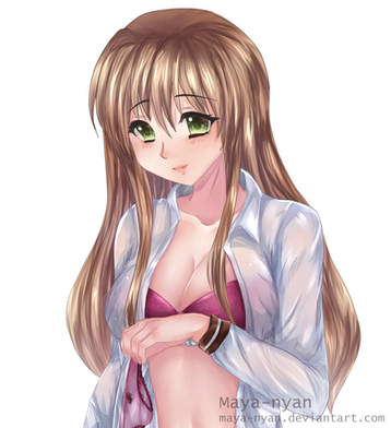 So close yet so far away. Quick someone splash a glass of water on her shirt! Very cute and very nice.