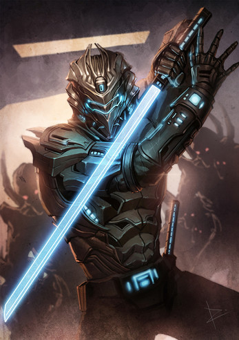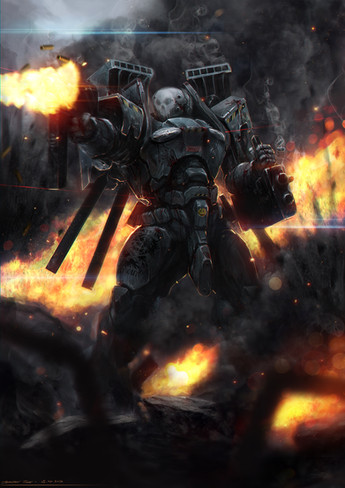 The boss is f'ing intense man! But his armor is kinda misleading my eyes, his head/shoulders and arms are visibly turned towards the boss, while the rest (mostly because of the torso looking armor + the "cup", wich also leads me to assume the back of the knees are actually kneepads) looks like its turned toward the viewer