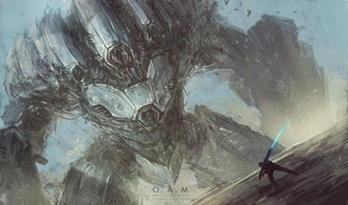 Another new painting. depicting a scene where this suited guy fighting off a giant boss. Bam.Photoshop cs5