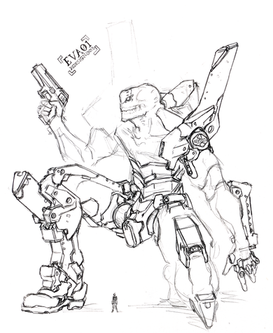 A sketch mixing two of my favorite mech and bio mech in the world, an Eva 01 and the almighty Gundam Unicorn, was planning to do a fully rendered scene but work came up and just manage to do a sketch. IMO, these two has a lot in common, the destroy mode in unicorn reminds me of the berserk mode in EVA, both are equally awesome! *I kept the unicorn horn closed cause it feels more Eva that wayDid the layout for extra lulz!