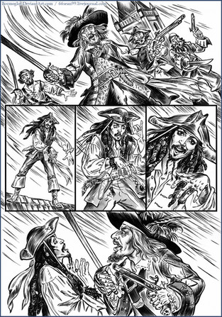 A few years ago I did some sample pages for The Pirates of the Caribbean. This is one of them.Related content