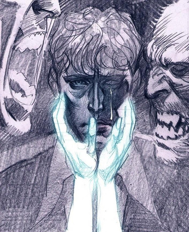 hm. Reminds me of Remus Lupin *is a Harry Potter nerd* It's lovely though. I love the hand and his facial expressions.