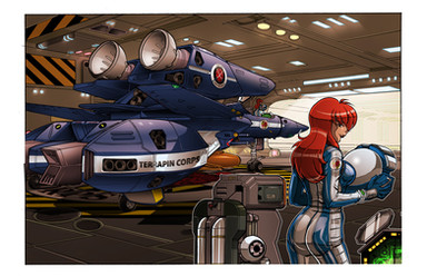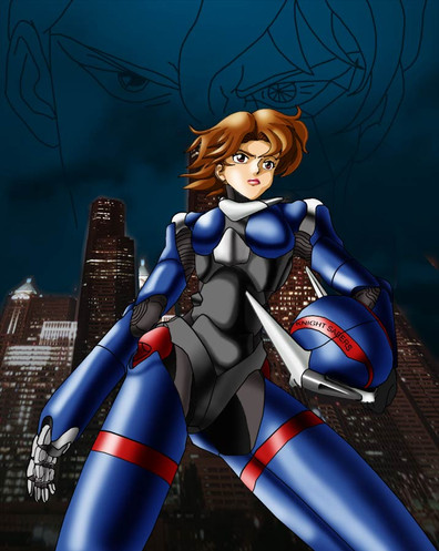 The only quibble I have with this piece is that your black and white original had better sparkly eyes than Phil's colors, but the addition of the infrared laser pointer, the lighting and shadows on the floor *and* his ensparkling (is there such a word? ) of Motoko's suit really make this pop. Sweet post-Christmas post, John.