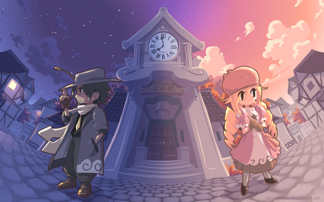Pocket watch has got style. I checked out larien's original work too. Pretty cool characters.