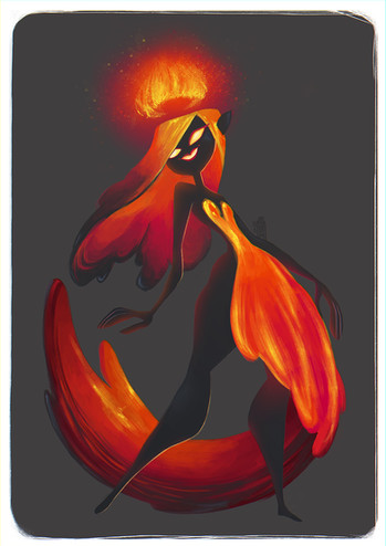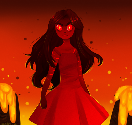 She then erupted from of the ground outside the palace where the ball was being held, and waltzed in on a path of molten glass. Everyone stopped dancing and looked at her and was like “Hey, is that a fire person?” and then she was like “IT IS!” and everybody screamed and ran while she had a great time. She kept this up until midnight, after which the enchantment wore off and she turned back into a pile of her own ashes. And her father, who had recognized his daughter, was like “No, Ella! Not you too!” because this was the same way he had lost her mother.