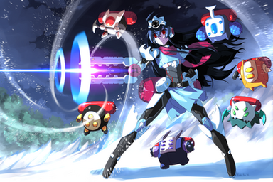 I wrote about 4 different descriptions for this piece before finally settling on this version. Early drafts had Enka as a species of pepper (Capsicum alraune) and would go into detail about the anthers on her hair and the nectar in her crown and how the claw arm was actually an ovary that would turn into an incendiary fruit if it ever got pollinated. And while it was kind of fun to make up these facts, it was very sad to think about how she's stuck to one spot forever and is just a jerk to these bees for no reason. It wasn't until the other night when I thought "What if she was a parasite?" that her existence became much more interesting. Her role was later developed into a pruner, but the gist of it was to give her mobility and to free her from the short, weird life of a flower.