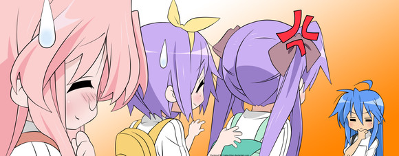 Oh, and in case you cannot tell where they are, they are on a filming set where they are trying to film Lucky Star's eyecatch.