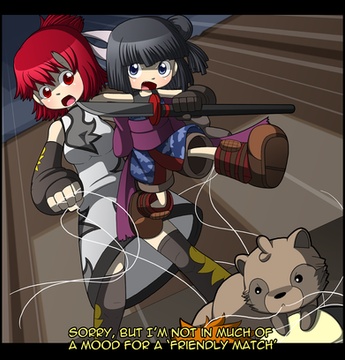 I'm not sure if I'd be the one holding the gun, or the one with the glasses. Either way, I'd enjoy this moment^vv^. Awesome!