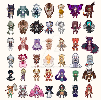 So a while back, I drew some of Firefall's mobs as girls for fun. It seemed appropriate to submit this on Halloween (though to half the world it is already November and also they don't understand this custom), so here it is!NOTE: Rock-chan in the corner there is not an actual mob, but rather a bug in the game where sometimes enemy NPCs will get stuck in the terrain and open fire on you. Don't know if it's still happening in the current build, though.