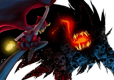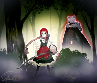 Turned out it wasn't necessary; Grandmother lived in door-less hole in the side of the mountain. When they arrived, the Wolf could see the disheveled old woman hunched over in the back of the cave, sharpening a knife. It made him a little uneasy, as did the pungent odor (which must have been what the Girl wanted flowers for). The Girl hopped off his back and called out to the crone, "Grandmother, I'm home! And I brought snaaacks♪." Yellow eyes peered out at them from the shadows. "Oya oya~," came a voice as old as stones. "Come in, dear child! How long it has been since you last visited!" The eyes flicked towards the basket. "AND WITH SNACKS," she added hoarily.