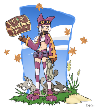Anyhow, I had fun drawing the clothes and the needlessly large boobs. My only regret is that I forgot to give her a weapon, and that she looks kinda like a trick-or-treater.