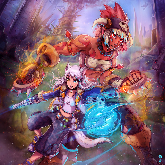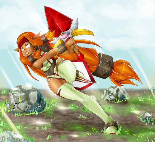 Cailin Cleigh comes from a long line of animators - artisans who construct golems and bring them to life. Unfortunately, none of the golems she makes will move on their own, so she fails to make a career of this and instead finds herself working in the mines. After almost dying on the job several times, her father urges her to pursue something safer, so she takes him up on that suggestion and becomes a bounty hunter.Her weapon of choice, Zweihander, is a set of two handed-swords which are actually just golem arms that were accidentally flattened during steaming. Those things are expensive to make, so Cailin salvaged them and worked them into swords. Even though she can't bring them to life, she has sufficient proficiency in hand-puppeteering to manipulate them like extensions of her arms. Her fighting style relies a lot on using her swords to grab and disarm her opponent when they attempt to parry her strikes.