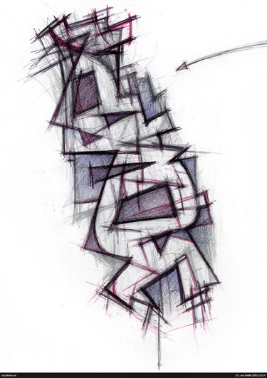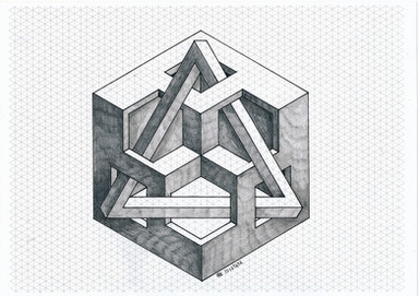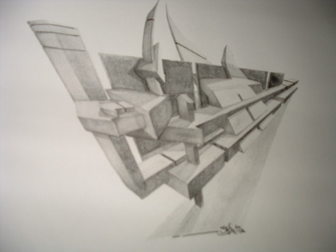 My final project for my basic drawing class. We had to create geometric shapes using two-point perspective.HB, 6B woodless graphite