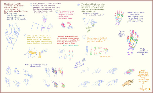 I hope this is helpful.It's hard to write a tutorial like this since some of my knowledge is purely observation based. By making this tutorial, I think i actually learn more about hands and how to avoid some of my own lazy habits/mistakes