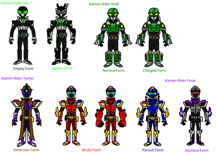 A.N: While browsing my projects, I came across a folder containing riders I scrapped in the past. I scrapped these for one of three reasons; I had no idea how to continue the rider formwise, I became disinterested in the rider's concept, or I have already reinvented it using the rider as a baseline (Usually a combination of the three). So, since I think these riders are better posted online then wasting away on my computer, I'm going to post them here when I have nothing to post. If you like any concepts or designs you see, Send me a note and I'll see about allowing you to adopt the rider. If you have any other questions, please comment and ask. Template by OllyTrinity1397.--Power Concept--