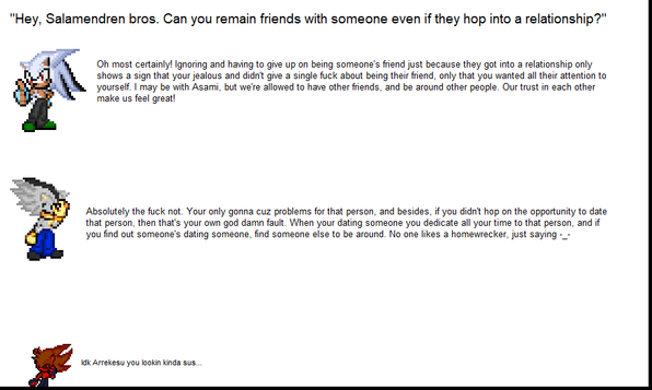 Seems someone likes Arrekesu, and Joineth is a bit upset about it. Why? She constintly follows Ary everywhere he goes.credit to me, sega, and whoever made Evil amy.