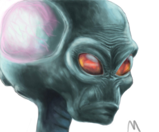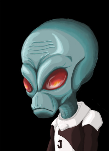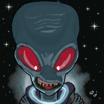 this is a alien named Crypto from the game Destroy all humansits not what I usually draw but I wanted to practis drawing on photoshop so I just got the idea to draw him after I played the game