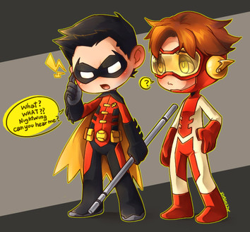 omg Nightwing dragging him. My friend legit squealed when she saw this picture (shes a huge N.W. fan so it didn't take much to rile her up //I was like "HEEEEY, YOU WANT SOME NIGHTWING?//)