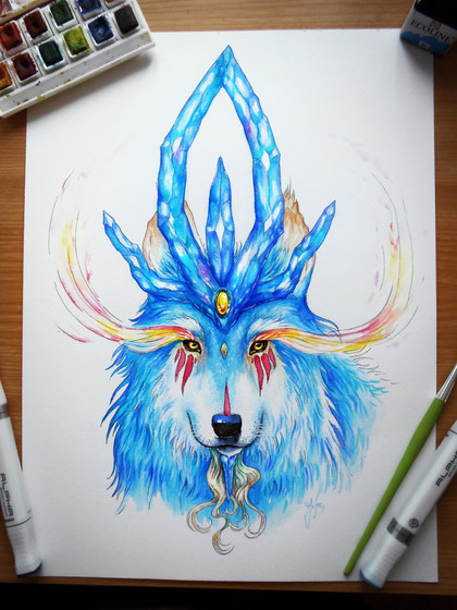 Absolutely stunning! I know I say that a lot but it's work! Definitely my favorite piece from you so far! My guess it's about life since the deer symbolizes it as well as the sun sometimes!
