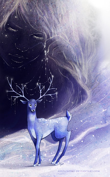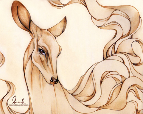 Lovely, again. So far I like the fox best, then this one, then winter. I like the touch of the butterfly, definitely. Its harder lines make it not fit in, as my first thought, but then again it makes sense if the butterfly is a temporal creature going before this spirit.