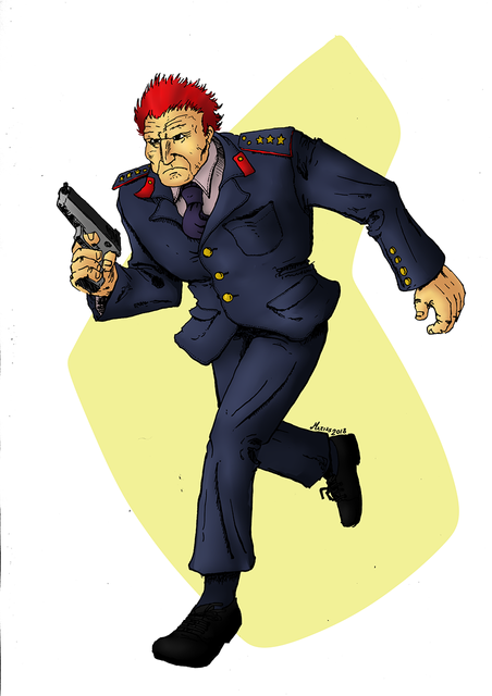 The little medals on his uniform are a nice touch, even his choice weapon.