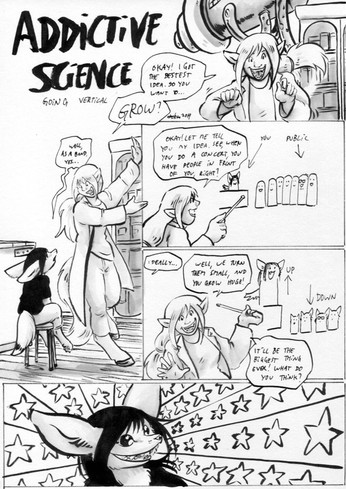 A sample from my latest Apsara comic ([link] ).A little bunny-scientist experiments on a little kitty-test-subject.