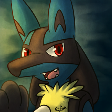 #blue #fanart #lucario #nintendo #orangeeyes #pokemon