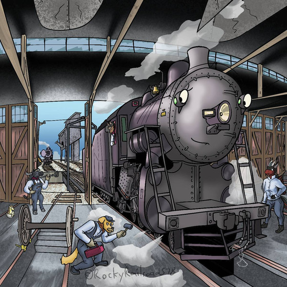 She would be kept with the diesels of the railroad she works for at the time, as the only living locomotive in the world she finds it a lonely experience. While not pictured here, she has a little bobber caboose that always trails behind the tender or the end of the train and that her fireman lives in.