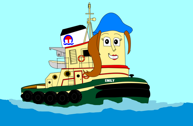 Here is Delta Queen from TUGS: The Bigg City Chronicles and based on a cut character from TUGS. Delta Queen was planned to be an Up-River paddle steamer before she evolved into O.J. O.J.'s model was originally built for her until it was decided that O.J. was to be a side-paddle tug. Here, Delta Queen is a tramper owned by O’Donnells.TUGS (c) Clearwater Features and Television South